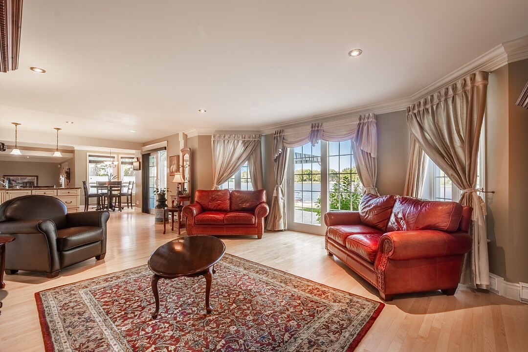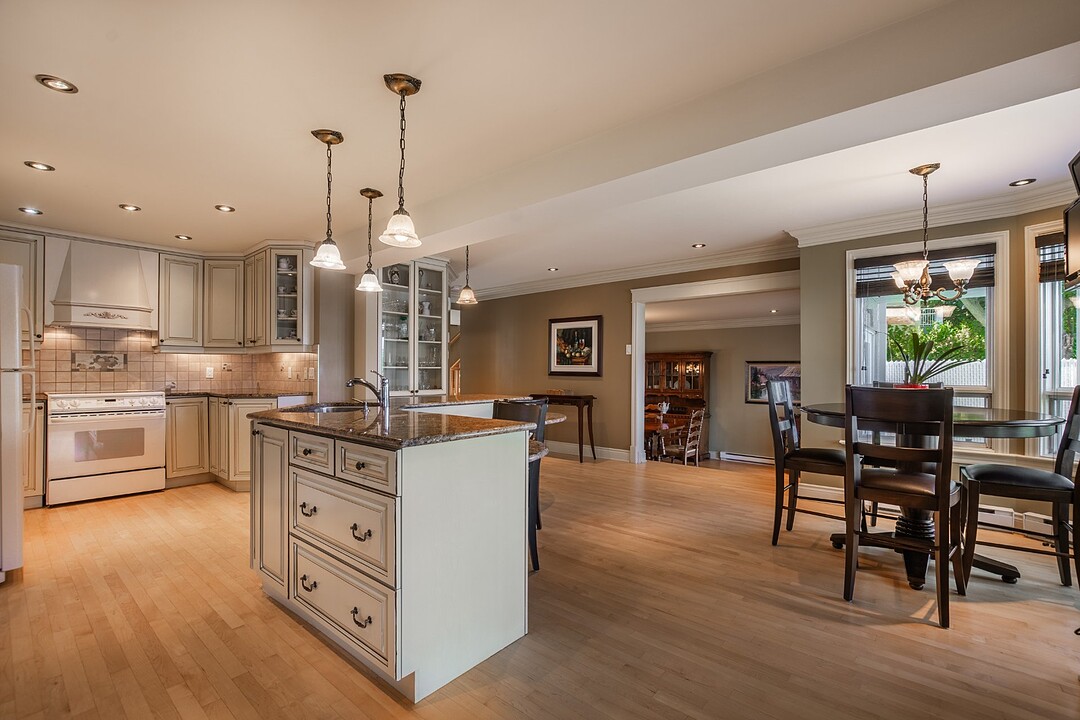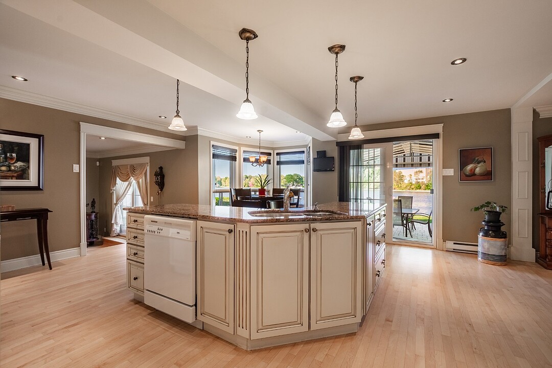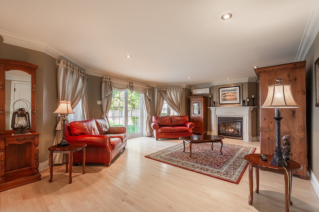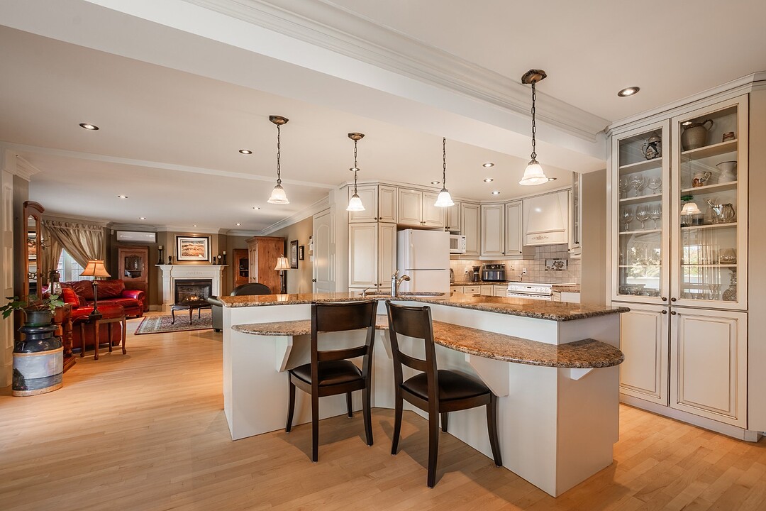 Inviting and functional kitchen: designed as the heart of the home, featuring abundant storage, timeless design, and breathtaking views of the river. Welcoming dining room: ideal for hosting family and friends while enjoying the panoramic scenery. Bright and elegant living room: flooded with natural light from expansive windows, offering a warm ambiance with its stylish gas fireplace--perfect for cozy winter evenings or relaxed gatherings. Main-floor office or bedroom: flexible space to suit your lifestyle needs.