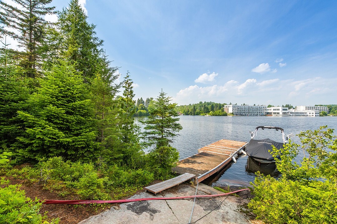 Navigable waterfront - Nestled on the shores of magnificent Lac Dupuis, this cozy 3-bedroom home offers an exceptional living environment in the heart of nature. Its open floor plan, bathed in natural light, showcases convivial living spaces, perfect for admiring the view of the water. Set on a vast 29,495 ft² lot, it offers direct access to hiking trails and a multitude of outdoor activities. Take advantage of nearby tennis and basketball courts, as well as 24-hour private security. Just steps away from Parc Estérel, a haven of peace awaits you!