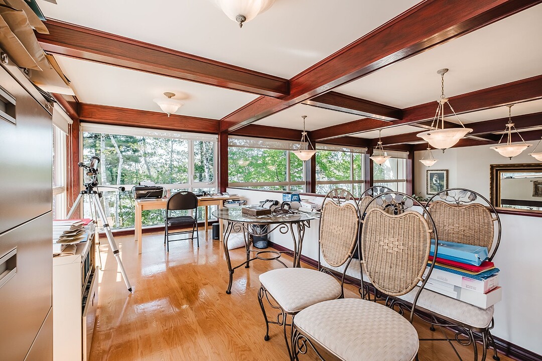 AAs soon as you step inside, you are welcomed by a breathtaking view of Lac Masson, setting an immediate tone of serenity and escape. Flooded with natural light through expansive panoramic windows, the home captivates with its refined blend of sophisticated traditional design and timeless luxury. The living room, worthy of the finest residences, features soaring ceilings, exposed wooden beams, and a mezzanine overlooking the space. A wood-burning fireplace completes the ambiance, adding warmth and elegance. The kitchen is equally bright and inviting, offering both functionality and comfort. With direct access to the backyard terrace, it is perfectly designed for outdoor dining while enjoying spectacular lake views. One of the home's standout features is the solarium, where a spa takes center stage, creating a private retreat dedicated to relaxation and well-being.
