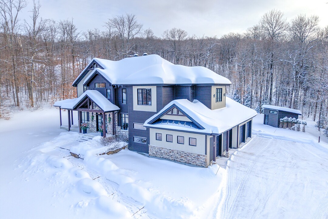Nestled in the peaceful municipality of Morin-Heights on a 46,814 square foot lot in the prestigious Balmoral estate, this magnificent 4-bedroom cottage combines elegance, modern comfort, and living in harmony with nature. Built in 2013, its timeless architecture blends perfectly with the wooded landscape that surrounds it.