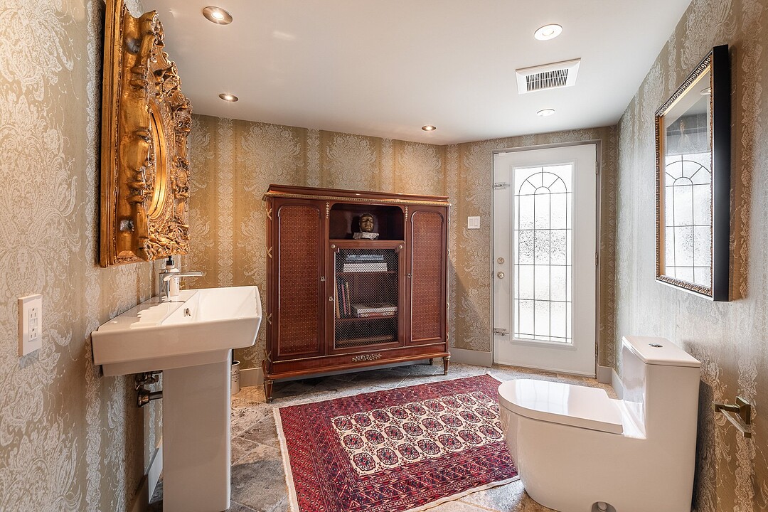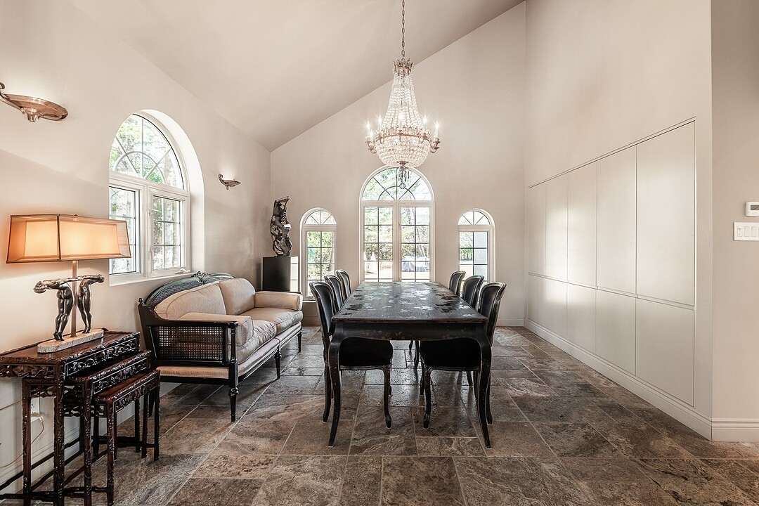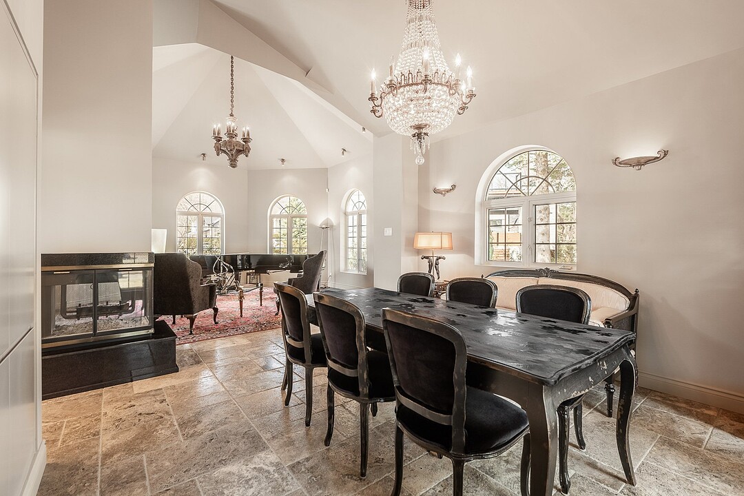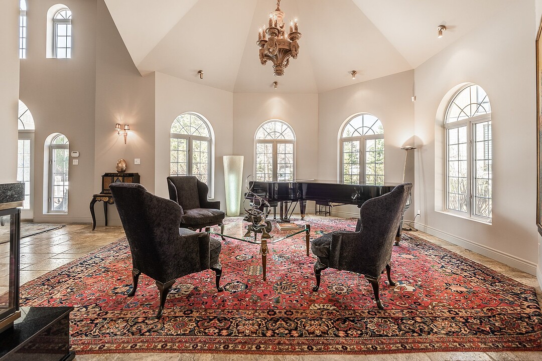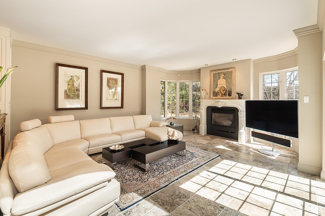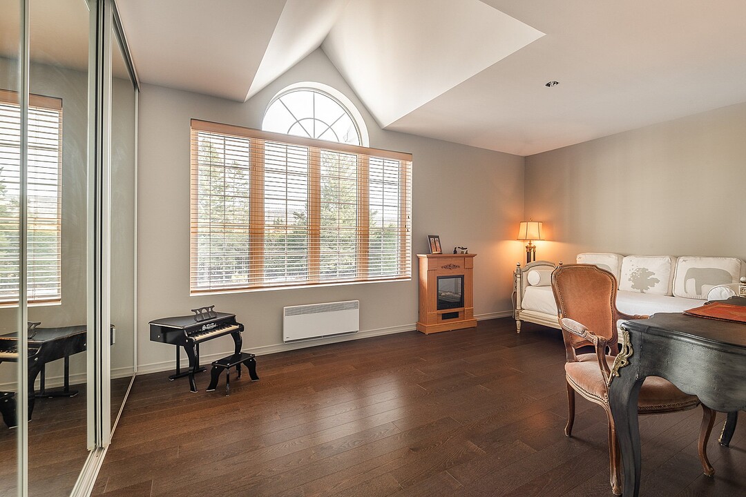 As soon as you enter the residence, the tone is set. Everything is refinement and sophistication. You will be struck by the volume of the entrance hall with its cathedral ceiling and its elegant art deco style staircase which leads to the mezzanine. The living room and dining room also feature cathedral ceilings and a three-sided fireplace. The kitchen, whose highly functional and optimized layout, is a true masterpiece created by designer Guy Gibeault. All storage space and Gaggenau appliances are built-in and not visible thanks to doors decorated with tinted glass. This open concept kitchen space is ideally located in the family room with its fireplace as well as the dinette area and gives access to the rear garden. All creating a soft and cozy atmosphere, thanks to the shades of greige colors.