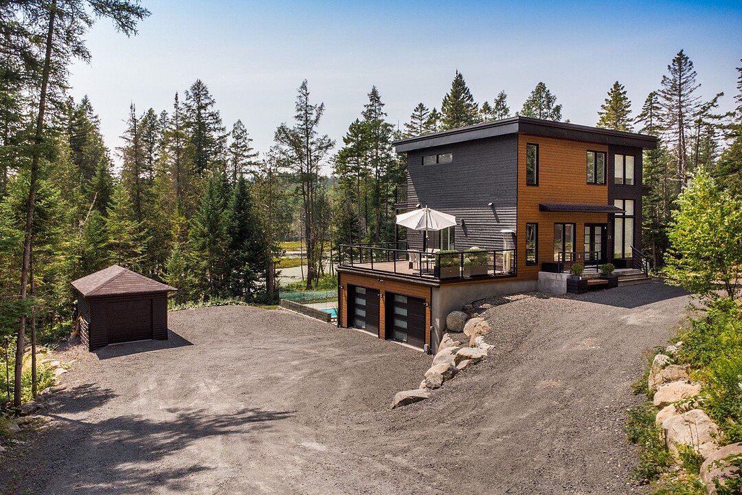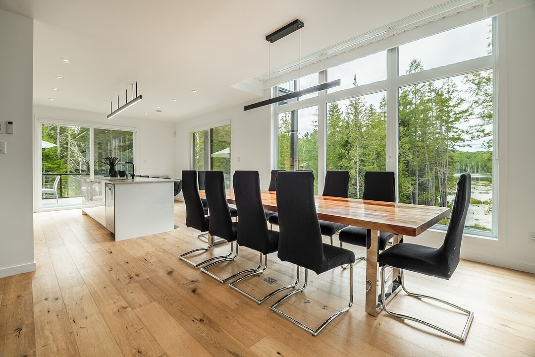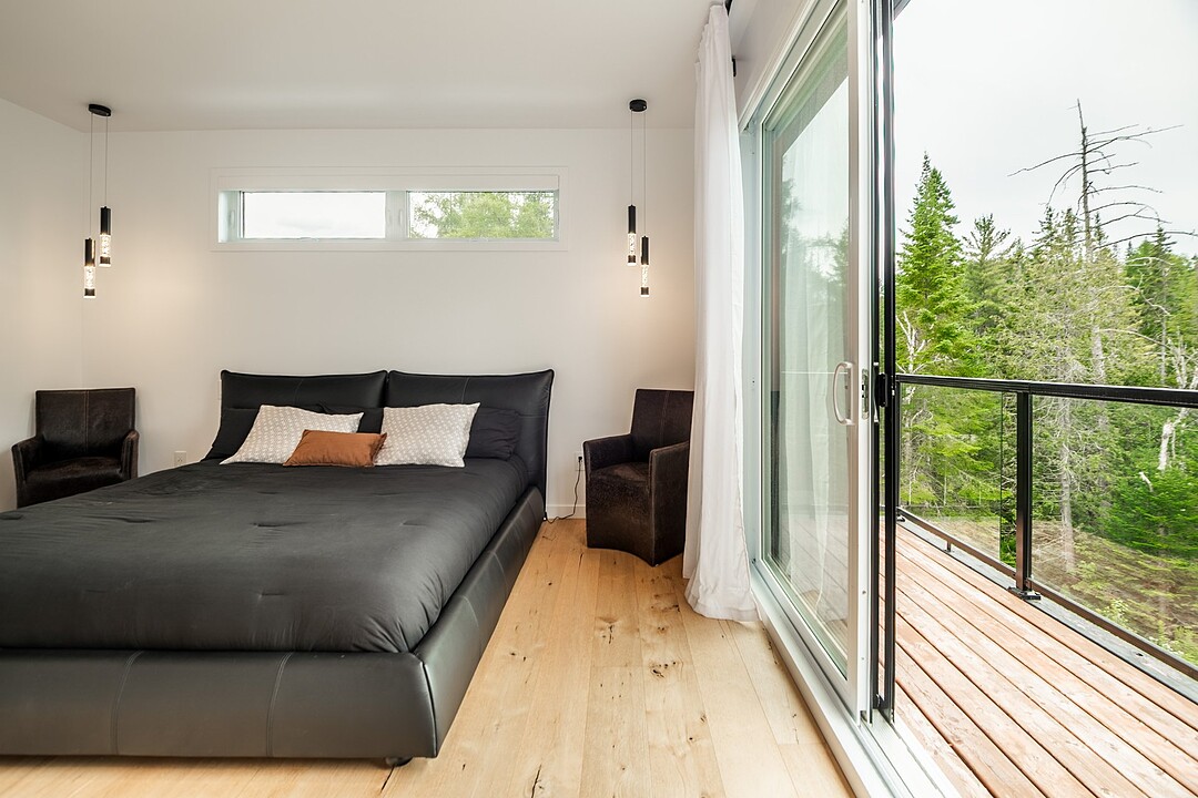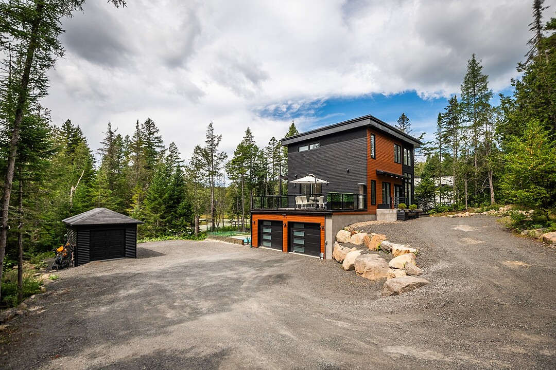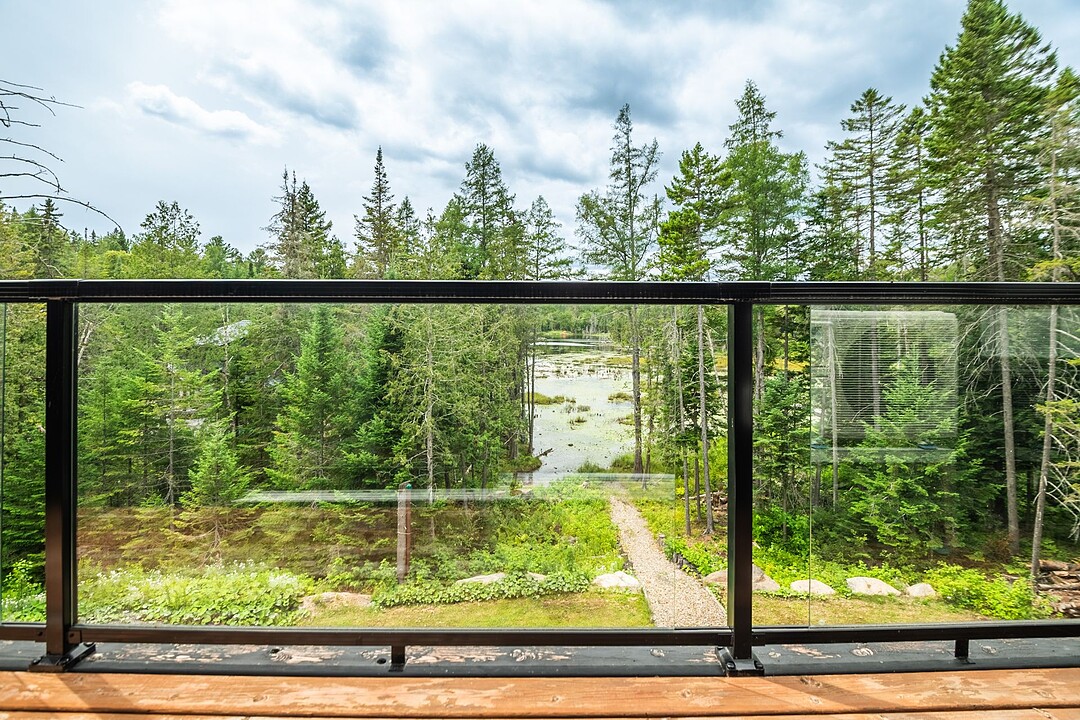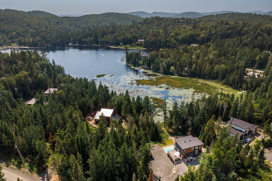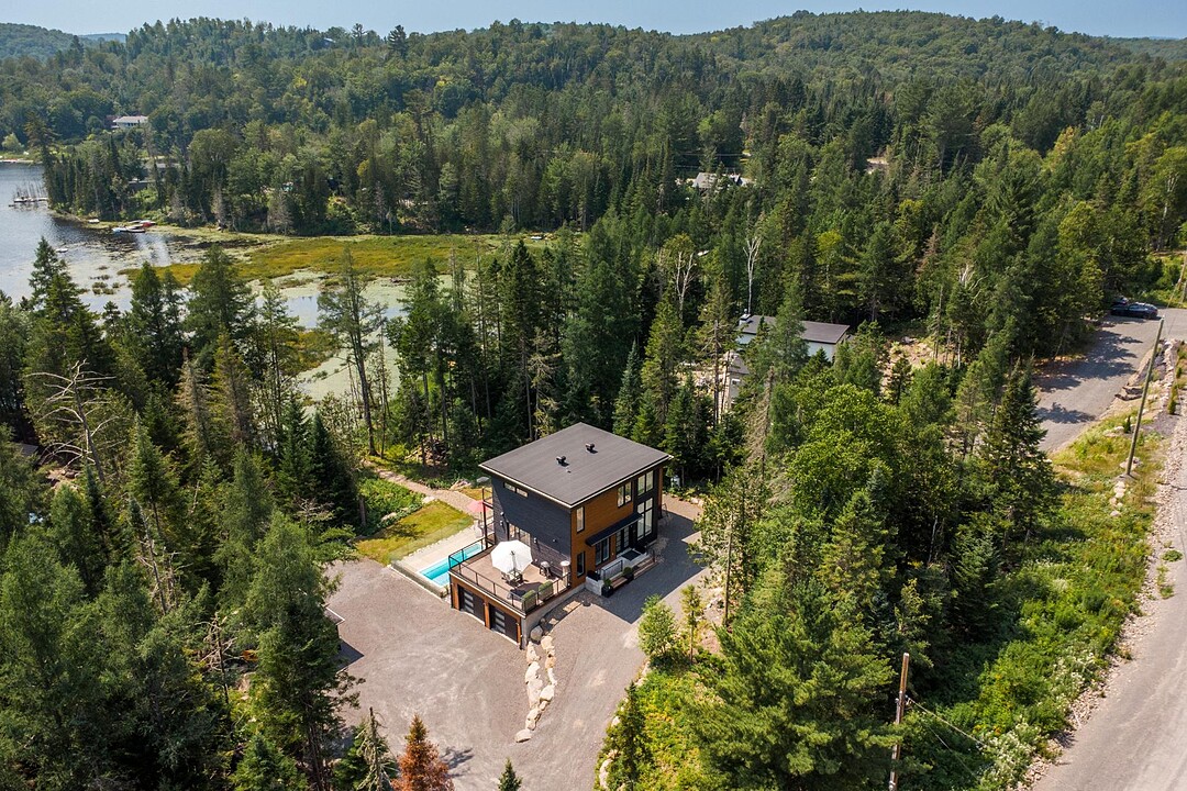 The layout of this property has been designed to follow the rhythm of nature. From the moment you step inside, Lake Piché reveals itself through expansive windows. To the left, a convenient powder room and a dog-wash station (perfect for muddy boots as well). To the right, the main living area. The kitchen stretches along the wall, offering an impressive work surface and a discreet walk-in pantry. Two patio doors open onto the terrace, where enjoying an aperitif quickly becomes a habit. The central dining area flows into the living room with a fireplace, creating a space that is open, warm, and well-structured. Upstairs, a versatile mezzanine with a suspended net overlooks the room below. The secluded primary bedroom features a private bathroom, walk-in closet, and an intimate balcony to watch the sunrise.