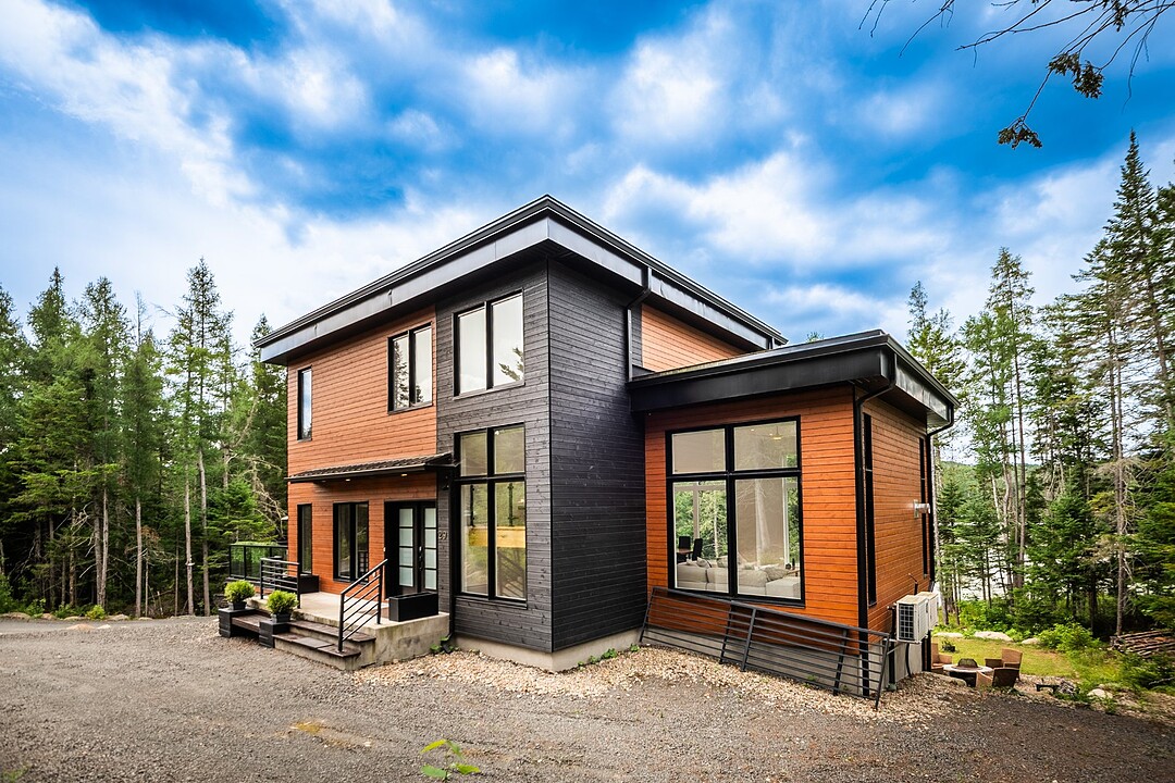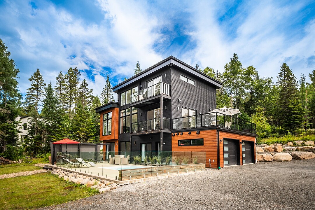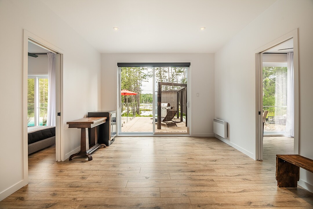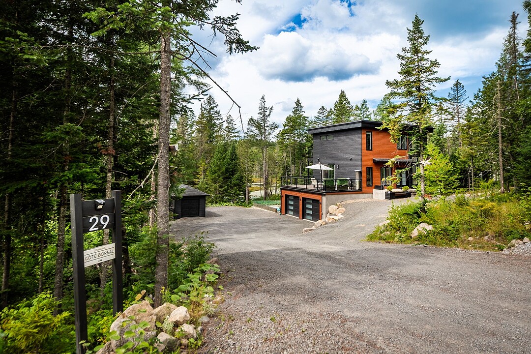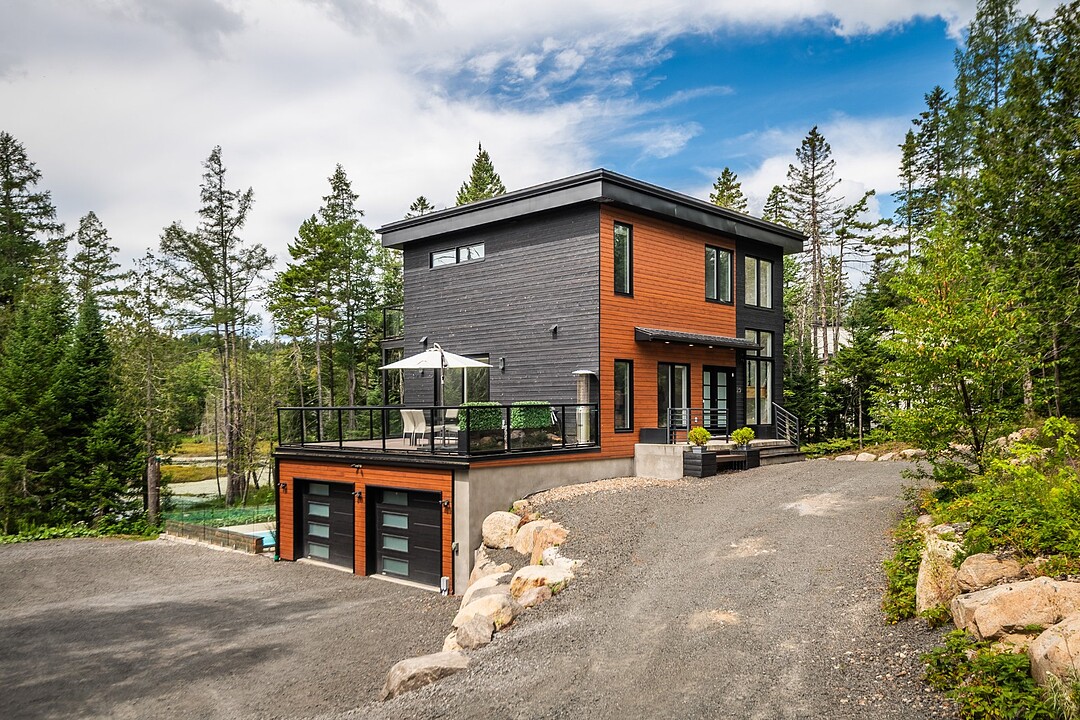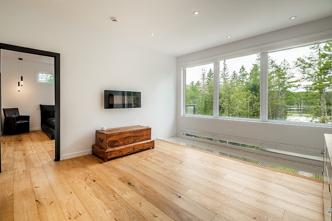 The layout of this property has been designed to follow the rhythm of nature. From the moment you step inside, Lake Piché reveals itself through expansive windows. To the left, a convenient powder room and a dog-wash station (perfect for muddy boots as well). To the right, the main living area. The kitchen stretches along the wall, offering an impressive work surface and a discreet walk-in pantry. Two patio doors open onto the terrace, where enjoying an aperitif quickly becomes a habit. The central dining area flows into the living room with a fireplace, creating a space that is open, warm, and well-structured. Upstairs, a versatile mezzanine with a suspended net overlooks the room below. The secluded primary bedroom features a private bathroom, walk-in closet, and an intimate balcony to watch the sunrise.