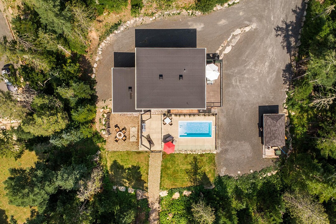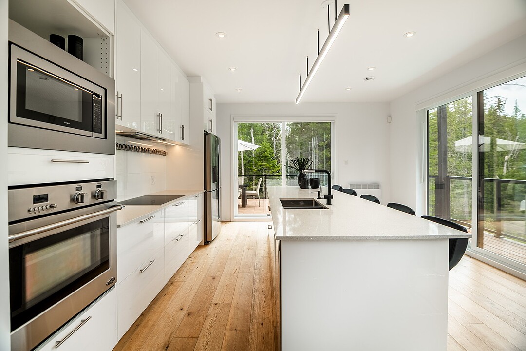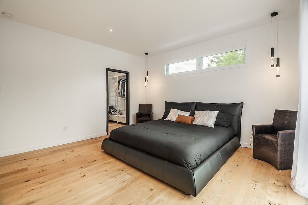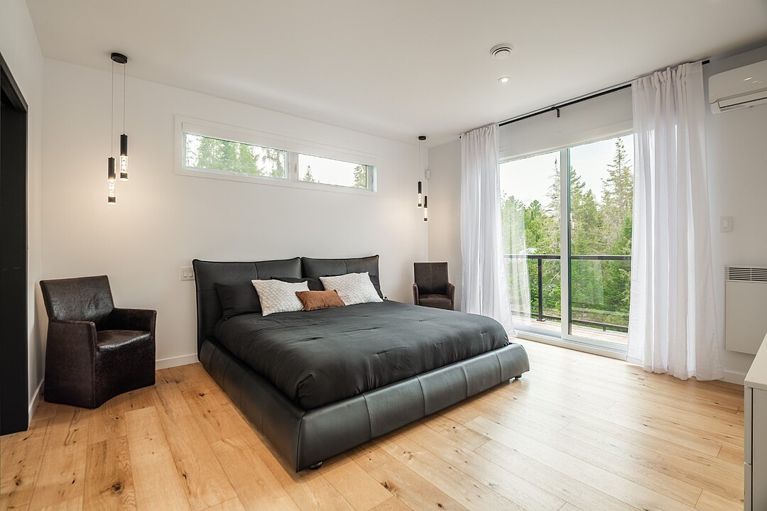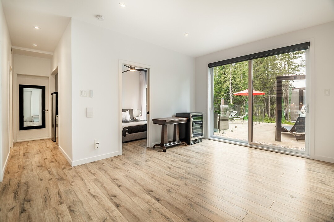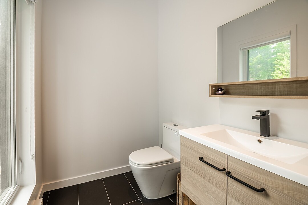 The layout of this property has been designed to follow the rhythm of nature. From the moment you step inside, Lake Piché reveals itself through expansive windows. To the left, a convenient powder room and a dog-wash station (perfect for muddy boots as well). To the right, the main living area. The kitchen stretches along the wall, offering an impressive work surface and a discreet walk-in pantry. Two patio doors open onto the terrace, where enjoying an aperitif quickly becomes a habit. The central dining area flows into the living room with a fireplace, creating a space that is open, warm, and well-structured. Upstairs, a versatile mezzanine with a suspended net overlooks the room below. The secluded primary bedroom features a private bathroom, walk-in closet, and an intimate balcony to watch the sunrise.