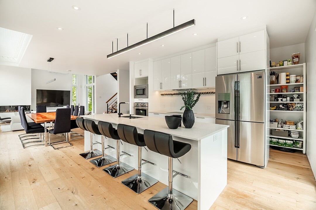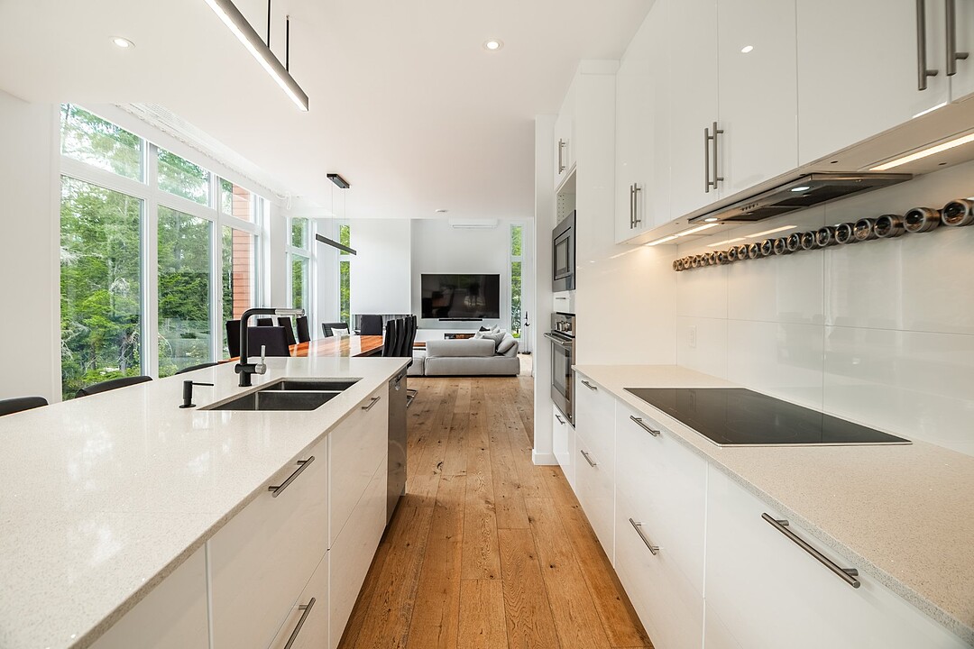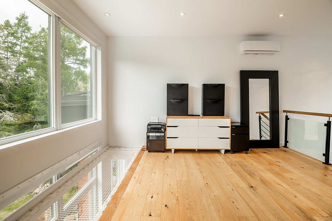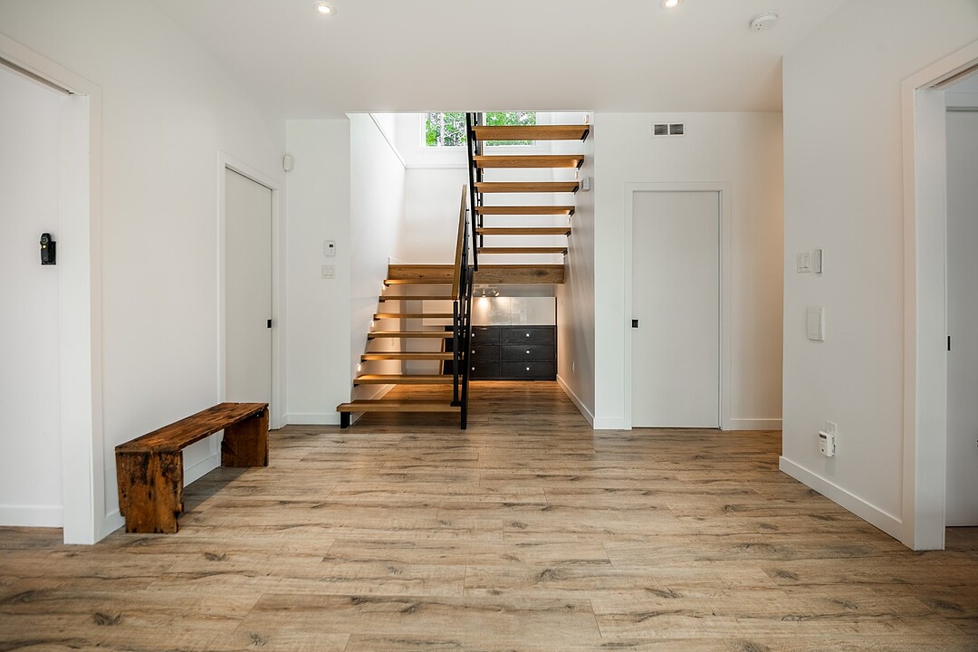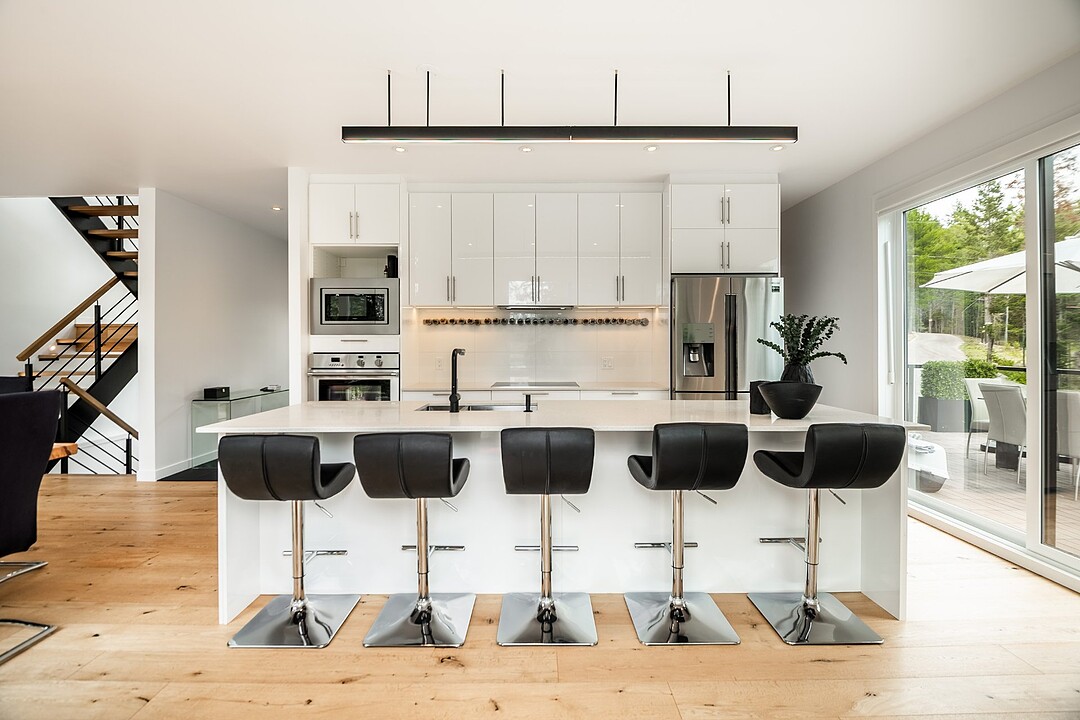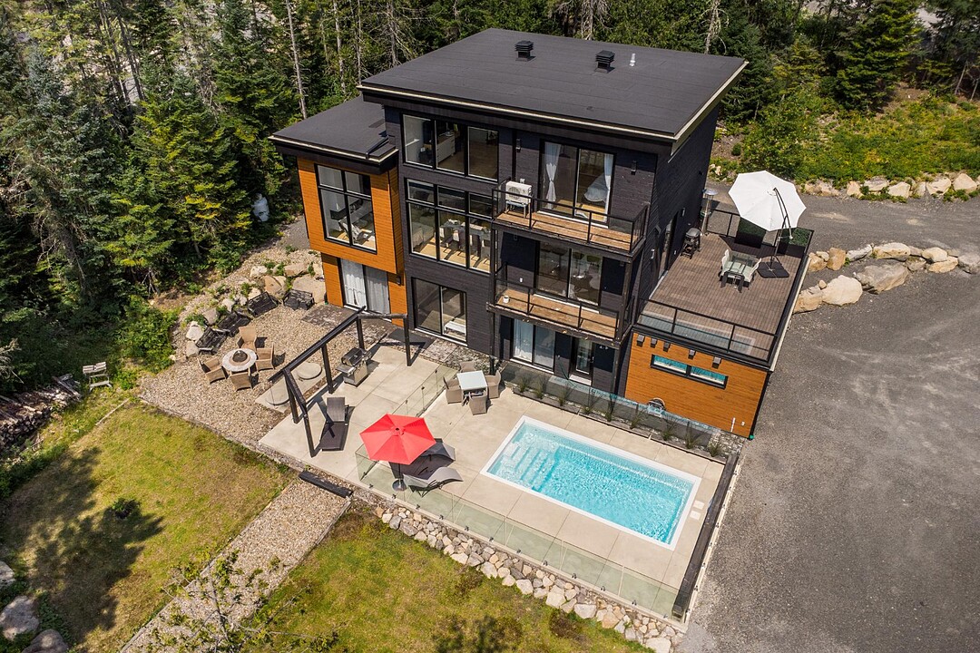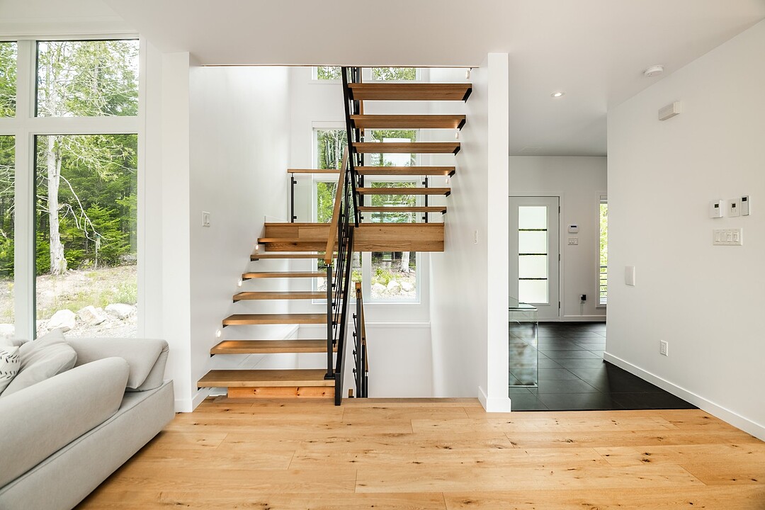 The layout of this property has been designed to follow the rhythm of nature. From the moment you step inside, Lake Piché reveals itself through expansive windows. To the left, a convenient powder room and a dog-wash station (perfect for muddy boots as well). To the right, the main living area. The kitchen stretches along the wall, offering an impressive work surface and a discreet walk-in pantry. Two patio doors open onto the terrace, where enjoying an aperitif quickly becomes a habit. The central dining area flows into the living room with a fireplace, creating a space that is open, warm, and well-structured. Upstairs, a versatile mezzanine with a suspended net overlooks the room below. The secluded primary bedroom features a private bathroom, walk-in closet, and an intimate balcony to watch the sunrise.