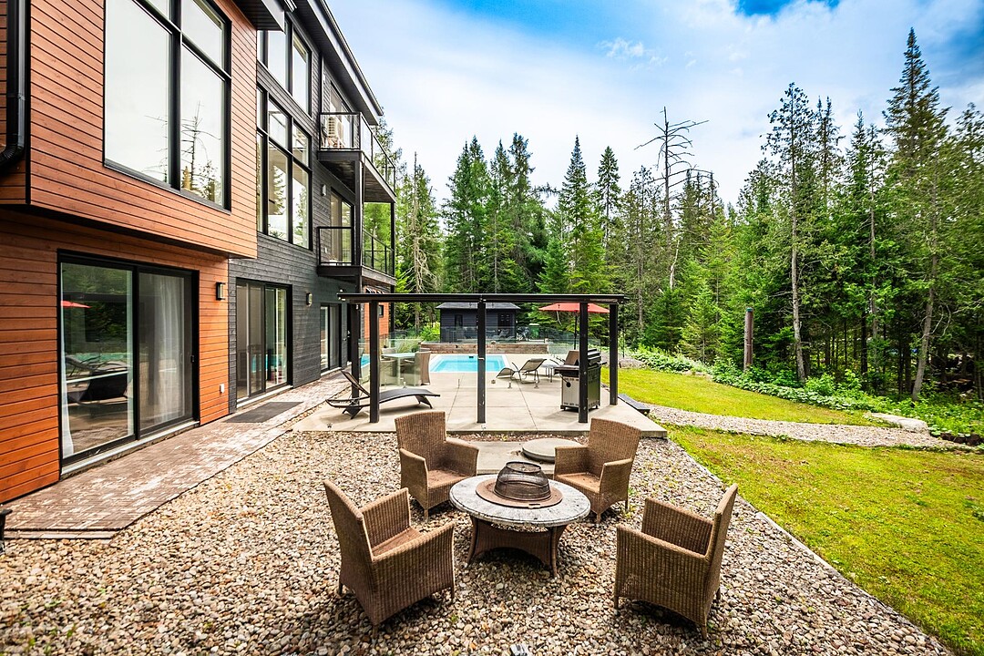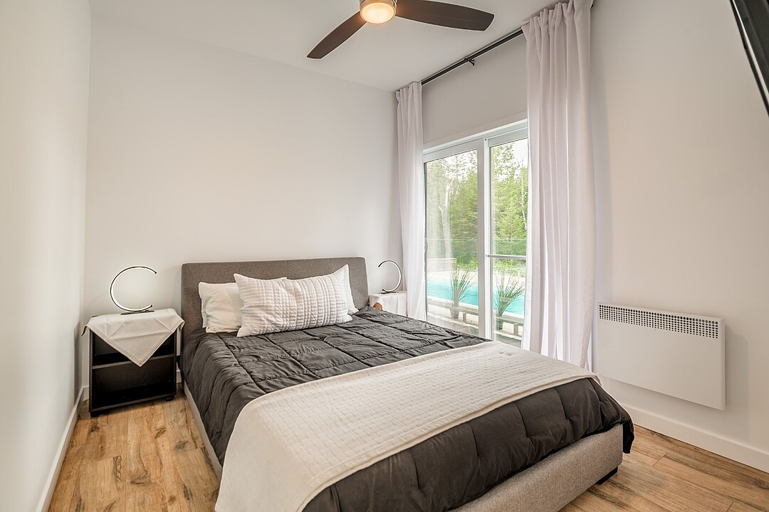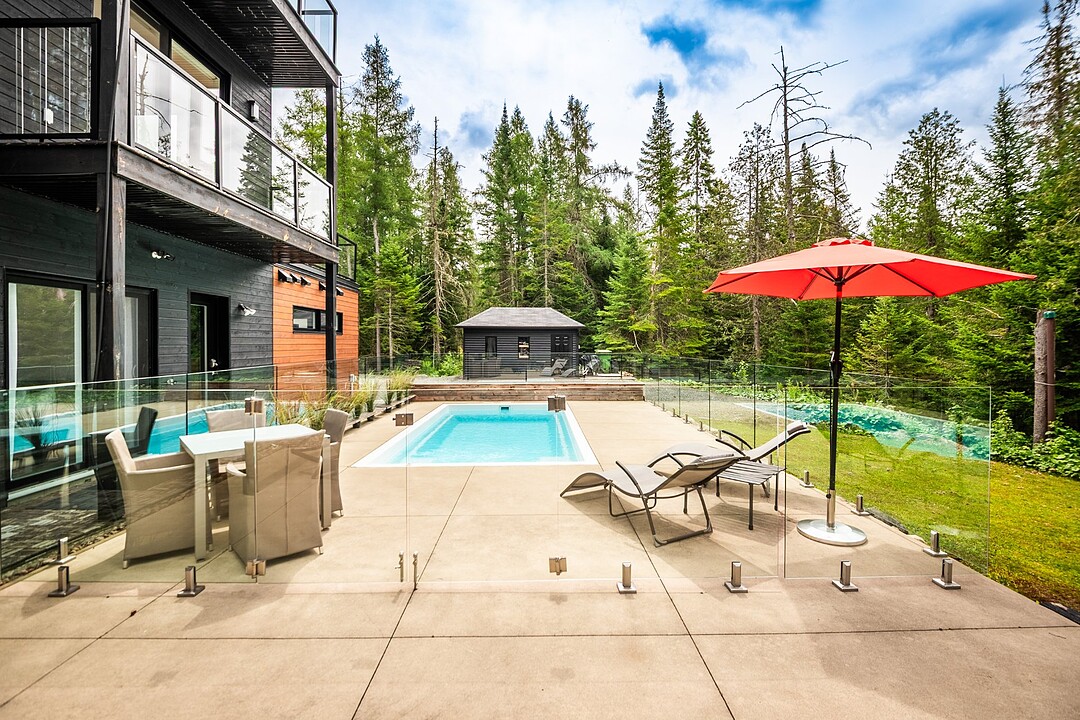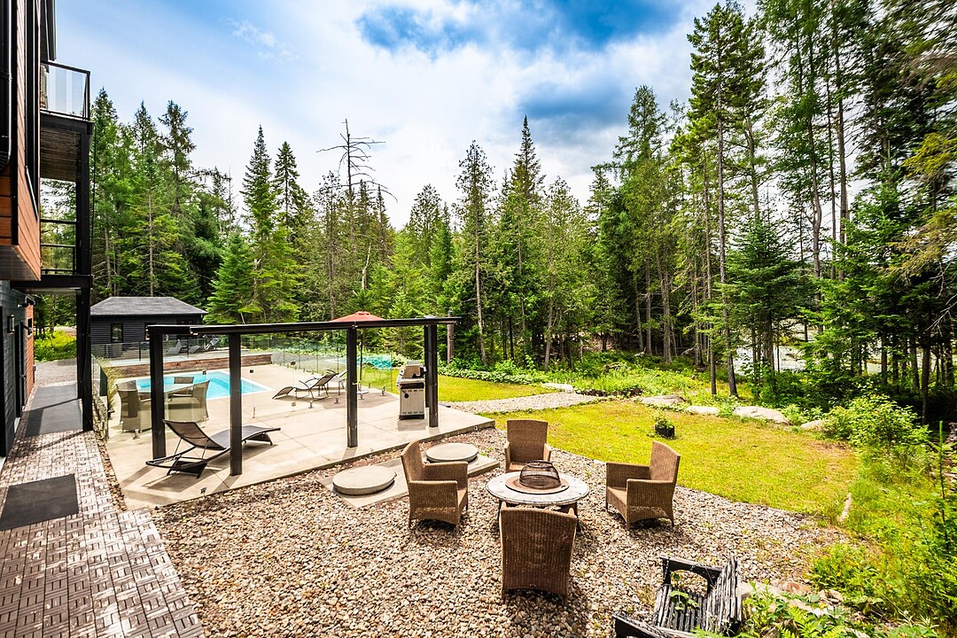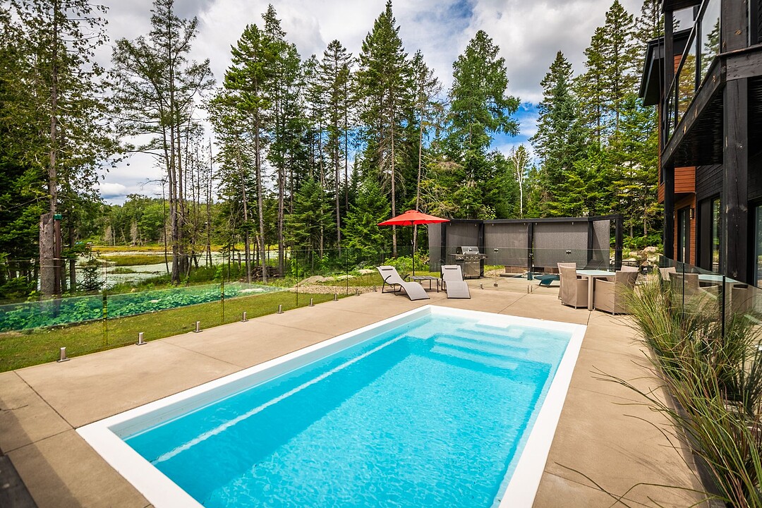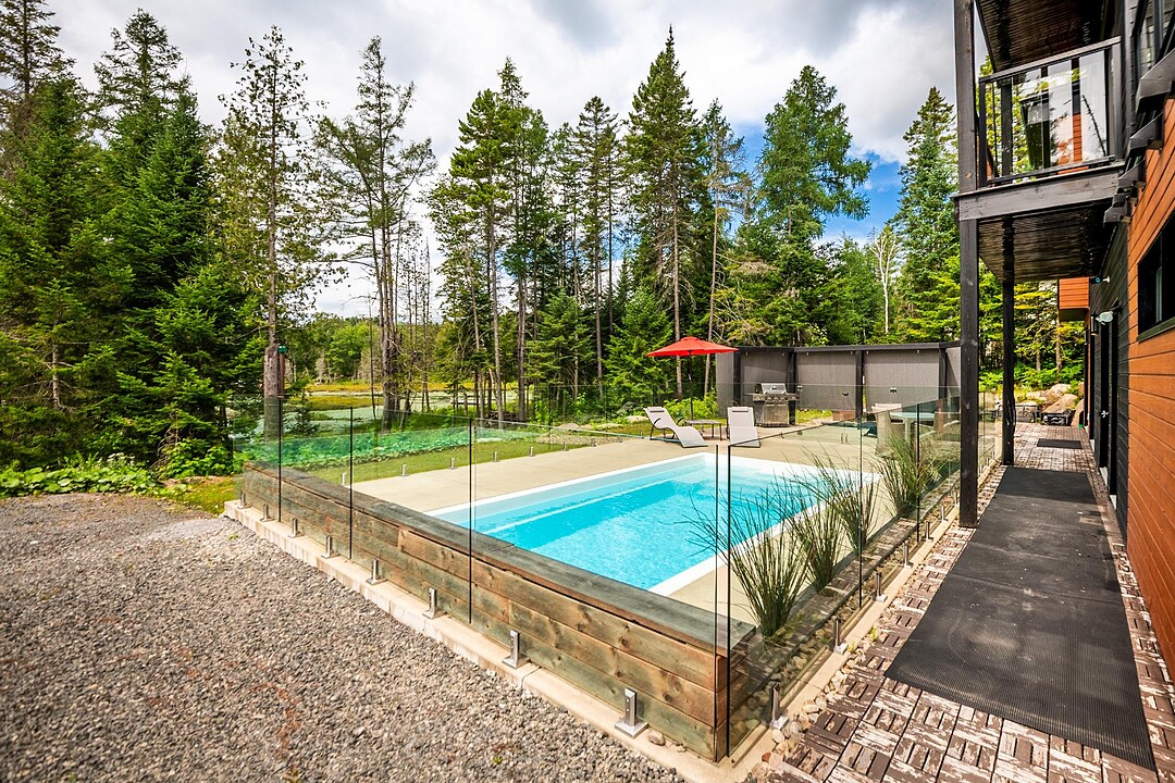 Outside, the yard feels like a true extension of the home: a saltwater fiberglass in-ground pool, already fenced, a firepit area, and a BBQ space with curtains or swings depending on the mood... and most importantly, direct access to Lake Piché. This non-motorized lake is a calm body of water, perfect for an early-morning kayak outing or a quiet moment on a paddle board.