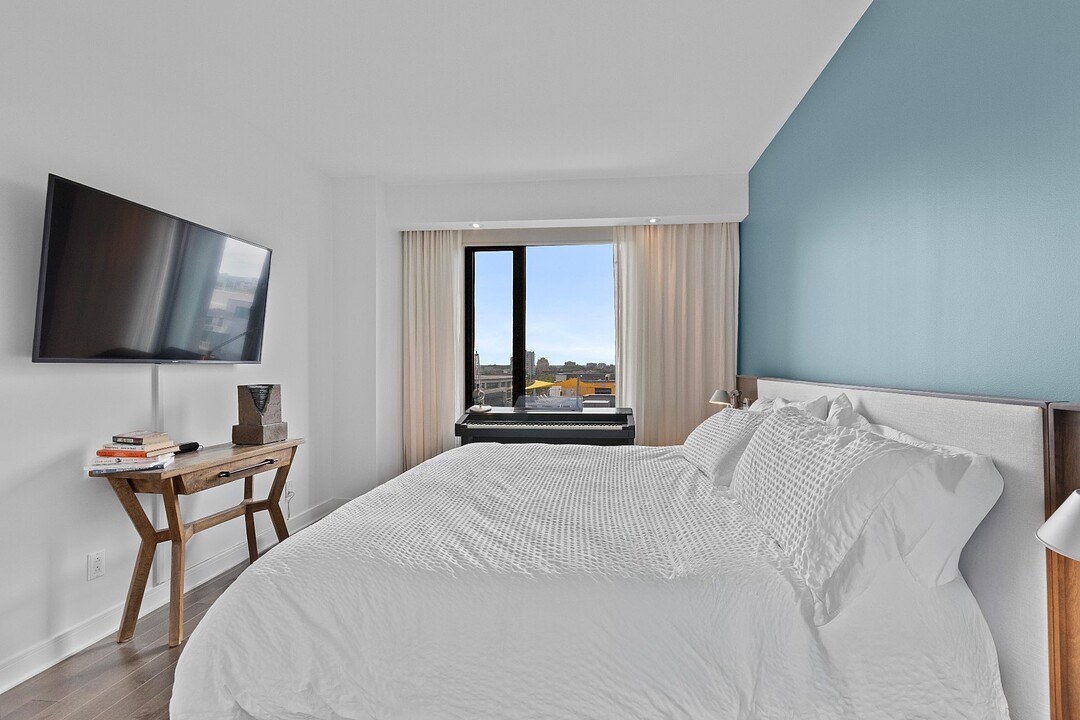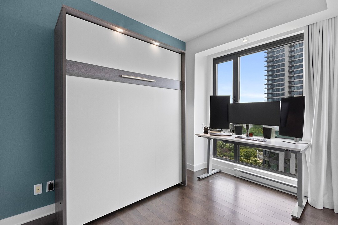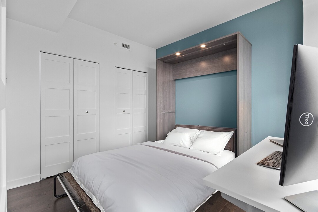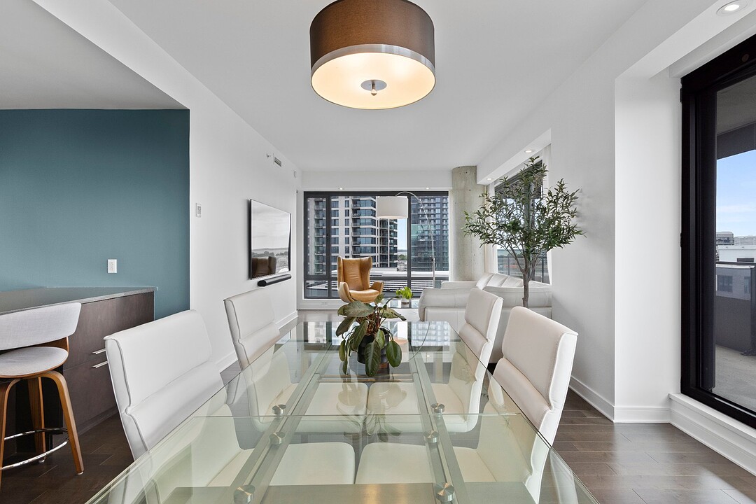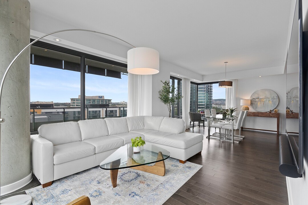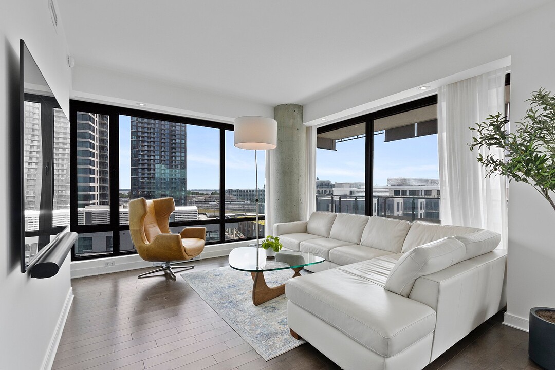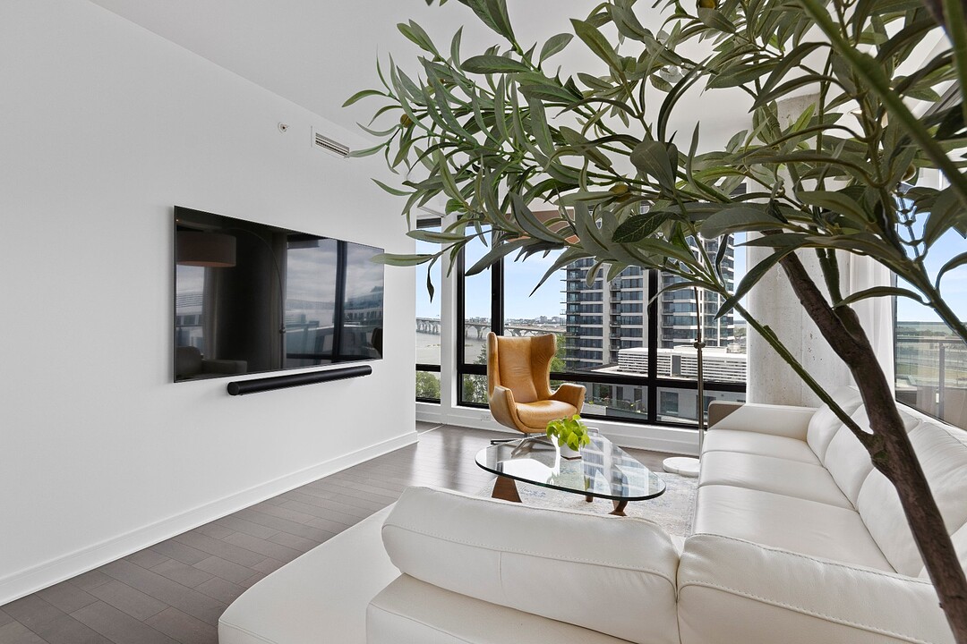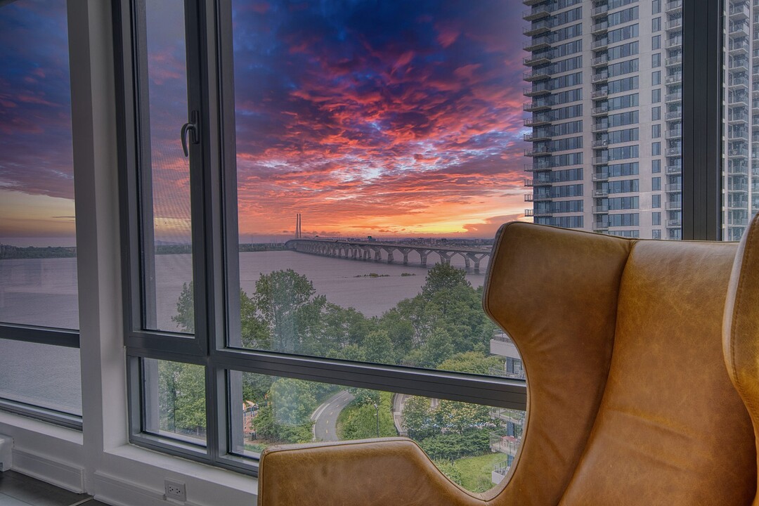 Welcome to unit 906 of Evolo Phase 1, a spacious and impeccably maintained 2-bedroom condo offering breathtaking views of the water and Île-des-Soeurs, a well designed layout, and a large private balcony.
