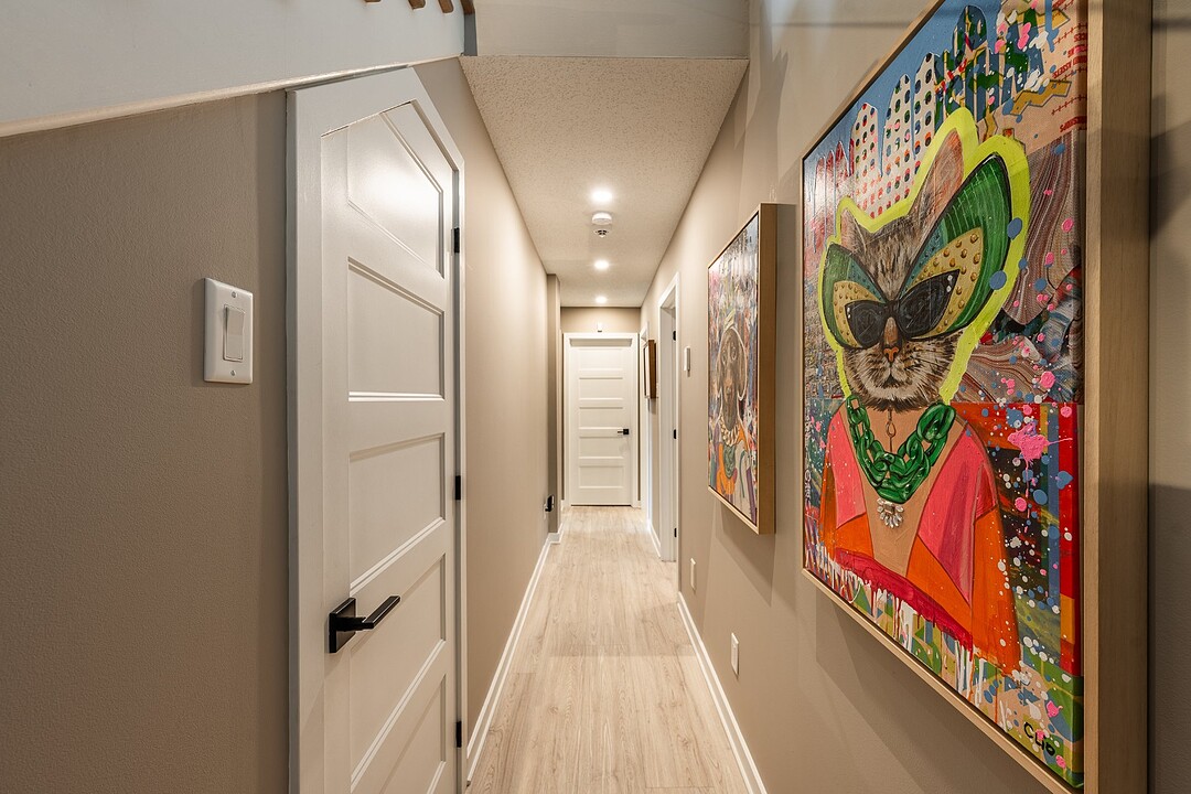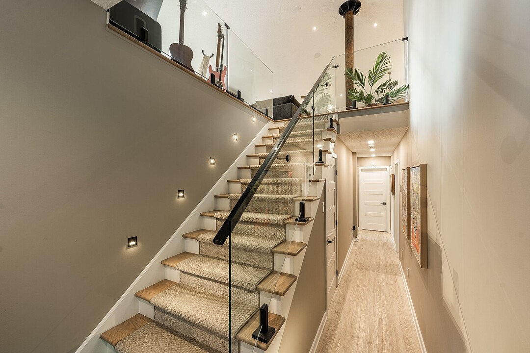 Le sous-sol bien pensé maximise le rangement et la fonctionnalité. On y trouve aussi une salle de musique/studio conçue avec soin : plancher et plafond dotés de panneaux acoustiques pour la qualité sonore, isolation supplémentaire, portes extérieures améliorant l'étanchéité et caméras intégrées prêtes pour la diffusion en direct. Cet espace distinctif séduira musiciens, créateurs ou toute personne cherchant un environnement semi-professionnel à domicile.